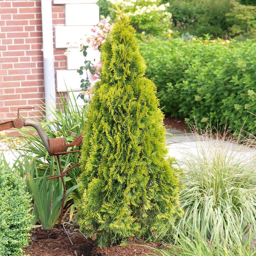 Csomag tartalma: 3 db A Thuja Golden Smaragd® egy kivételes tűlevelű növény, amely élénk aranysárga színével és elegáns struktúrájával lenyűgözi, és bármely kertnek vonzó és luxus hatást kölcsönöz. Sűrű, oszlopos növekedési formájáról ismert, ami természetes és egyenletes formázást tesz lehetővé. Élénk aranysárga tűlevelei egész évben megőrzik színüket. Legyen szó szoliter növényről, sövényről vagy csoportos ültetésről harmonikusan illeszkedik a különböző kertstílusokhoz.