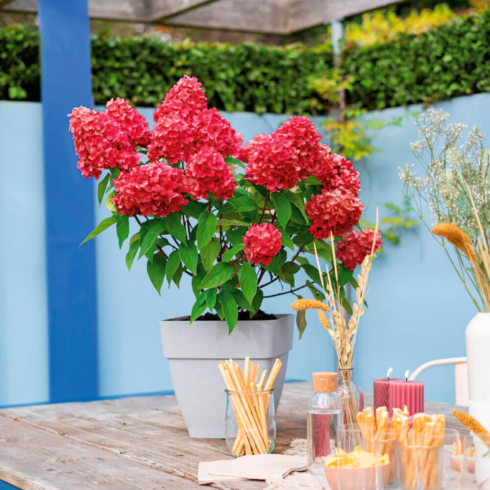 Csomag tartalma: 1 db Ez a csokros hortenzia nagyméretű, bőséges pirosas-pinkes virágai miatt kiemelkedik, amelyek júliustól szeptemberig ragyognak. Hosszú virágzási idő, telt növekedés. Kezdetben gyönyörű krémfehér színben jelennek meg, majd nyár folyamán halvány rózsaszínre és végül erőteljes pirosra változnak.