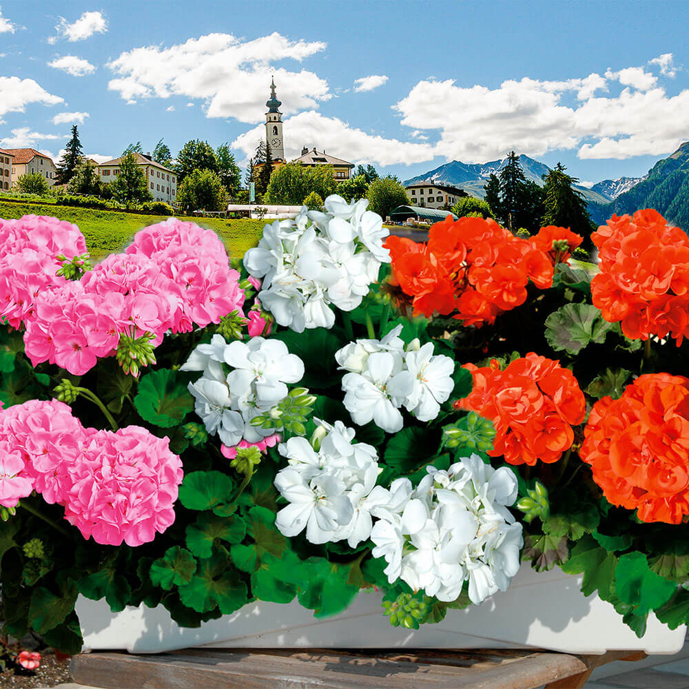 Csomag tartalma: 3 db A muskátli Sunrise® Clarissa nagy, mutatós és félig dupla virágaival fog elvarázsolni, melyek erős és ragyogó fehérségükkel vonzzák mindenki figyelmét. A sötétzöld lombozat remek kontrasztot alkot az élénk fehér virágokkal, ezért szemet gyönyörködtető ágyásban, erkélyládában vagy virágcserépben.