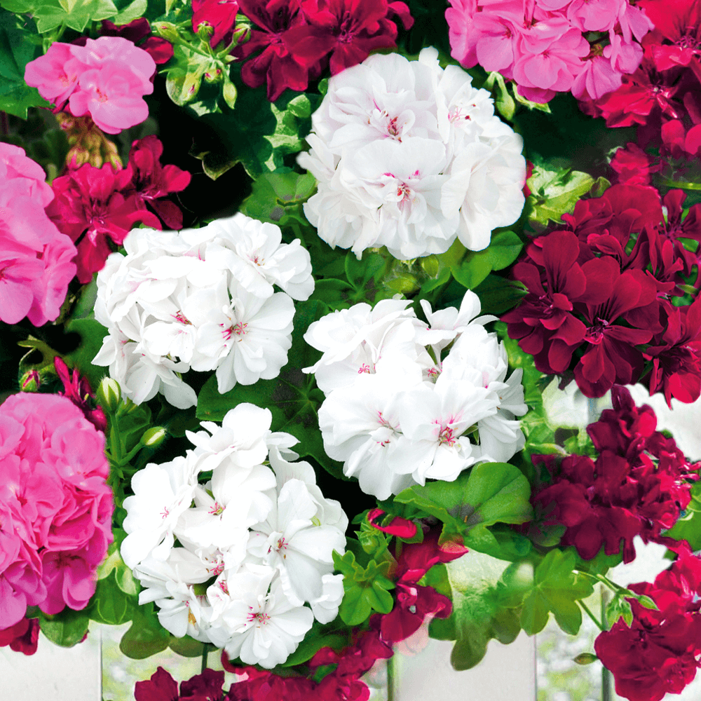 Csomag tartalma: 3 db Dupla virágú félfutó muskátli, fehér virágokkal és szép sötétzöld levelekkel. Egész nyáron át virágzik, jól bírja a nyári hőséget.