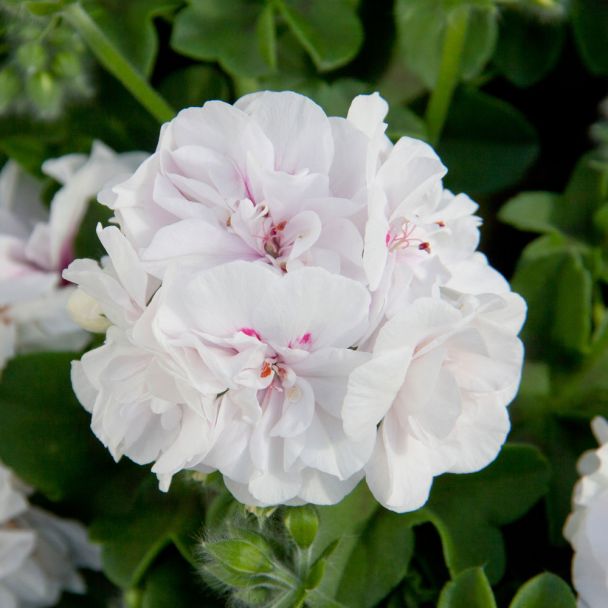 Csomag tartalma: 3 db Dupla virágú félfutó muskátli, fehér virágokkal és szép sötétzöld levelekkel. Egész nyáron át virágzik, jól bírja a nyári hőséget.