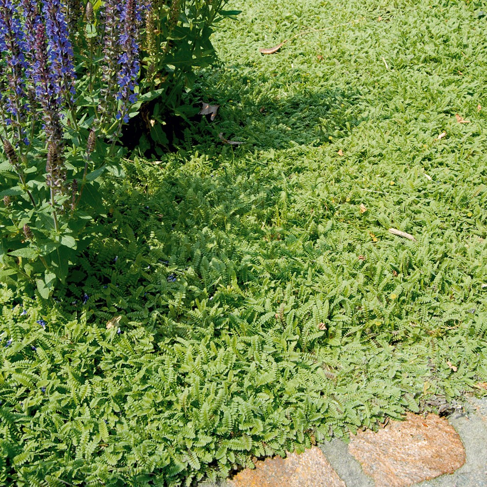 Csomag tartalma: 3 db Talajtakaró növény, finom, tollszerű, taposást tűrő, bordó levelekkel. Sárga, gombalakú virágai májustól júniusig láthatók. Gyeppótlónak ültetik, nem kell nyírni. Vízigényes, a napos helyet szereti. 4-6 db/m2.