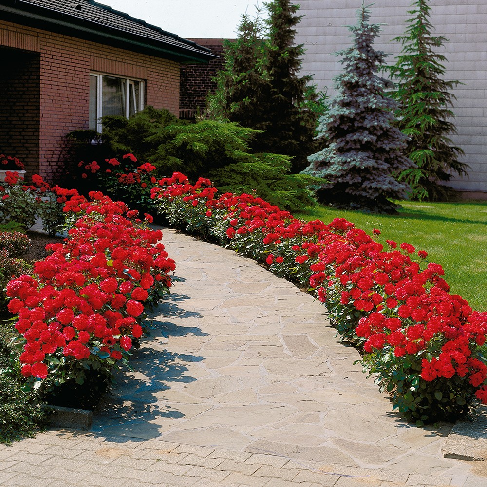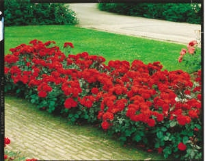 Piros ágyásrózsa, konténeres