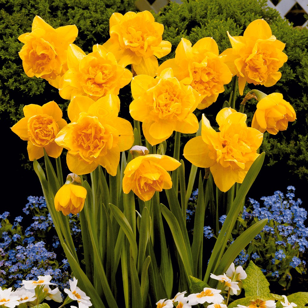 Csomag tartalma: 3 db Március-áprilisban virágzó, 40 cm magasra növő, telt virágú nárcisz színkeverék. Cserepes növényeket szállítunk.