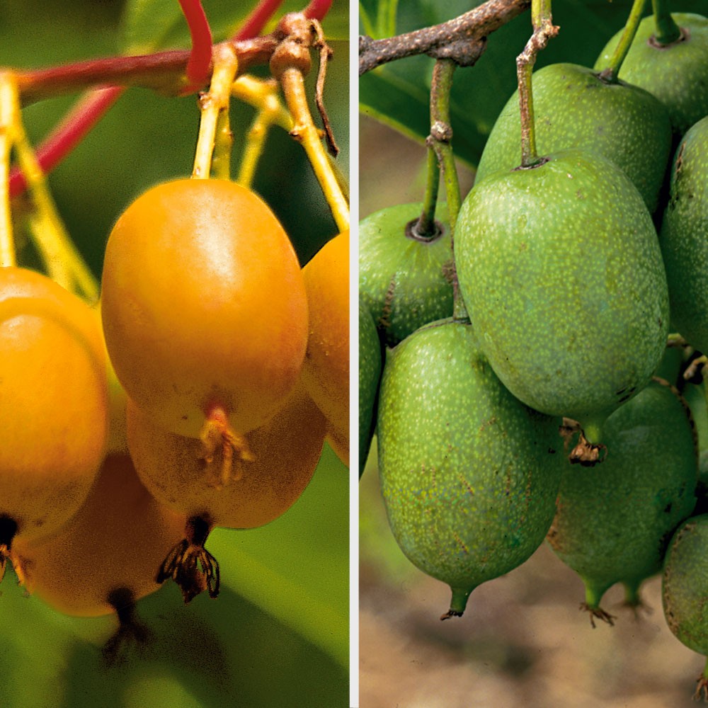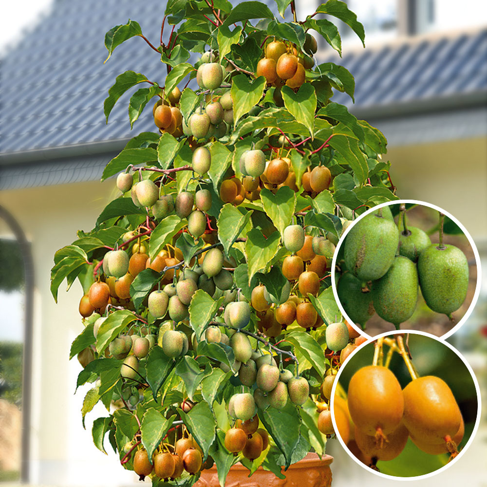 Csomag tartalma: 1 db Két szuper kivifajta együtt!A Bajor kivi és az Issai kivi egy cserépbe ültetve.Teljesen télállóak, nagy edényben akár teraszon is tarthatók néhány évig. Az edényt télen védeni kell. Már a második, vagy a harmadik évben bő termést hozhat. A sima, zöld héjú Issai kivit már szeptembertől szedhetjük a bokorról. Az aranysárga, édes, leveses gyümölcsű Bajor kivit minden ínyenc szereti. Október elejétől szüretelhető. A nőivarú Bajor kivit az öntermékeny Issai beporozza. Mindkét növény ellenálló a betegségekkel szemben. Extra erős,konténeres növények.