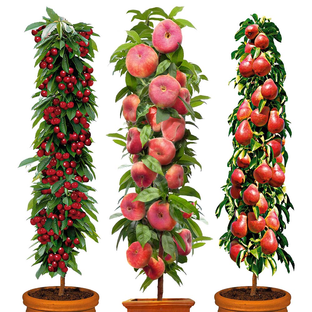 Csomag tartalma: 3 db Oszlopos körte 'Decora' egy éves Üdítően édes gyümölcsök, vörös héjjal, súlyuk elérheti a 150 grammot. Kellemesen édes ízű. Betakarítási idő: szeptember vége- október eleje. Szállítási méret: kb. 60 - 100 cm Oszlopos gyümölcsfa meggy 'Rubina' egy éves Természtesen kellemesen édes -savanyú ízű. Bőtermő. Gyümölcs mérete, kb. 7,5 g. Színe sötétvörös, majdnem fekete. Különlegesen ellenálló fajta. Érési ideje július közepétől, július végéig. Öntermékeny. Szállítási méret: kb. 60 - 100 cm Oszlopos barack „Little Pinocchio” egy éves Hihetetlenül édes és lédús gyümölcs. Virágait áprilistól május végéig hozza. Augusztustól fordul termőre. Öntermékeny. Szállítási méret: kb. 60 - 100 cm