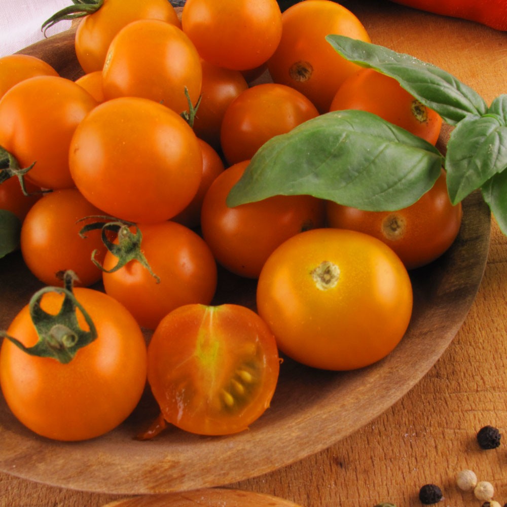 Csomag tartalma: 1 db Erőteljes növekedésű, rendkívül ellenálló, nagy hozamú hibrid. A 'CherryGold' édes, aromás, narancsvörös gyümölcsei igazi prémium élményt nyújtanak, legyen szó salátáról vagy friss fogyasztásról. Korán érő, bőtermő fajta.