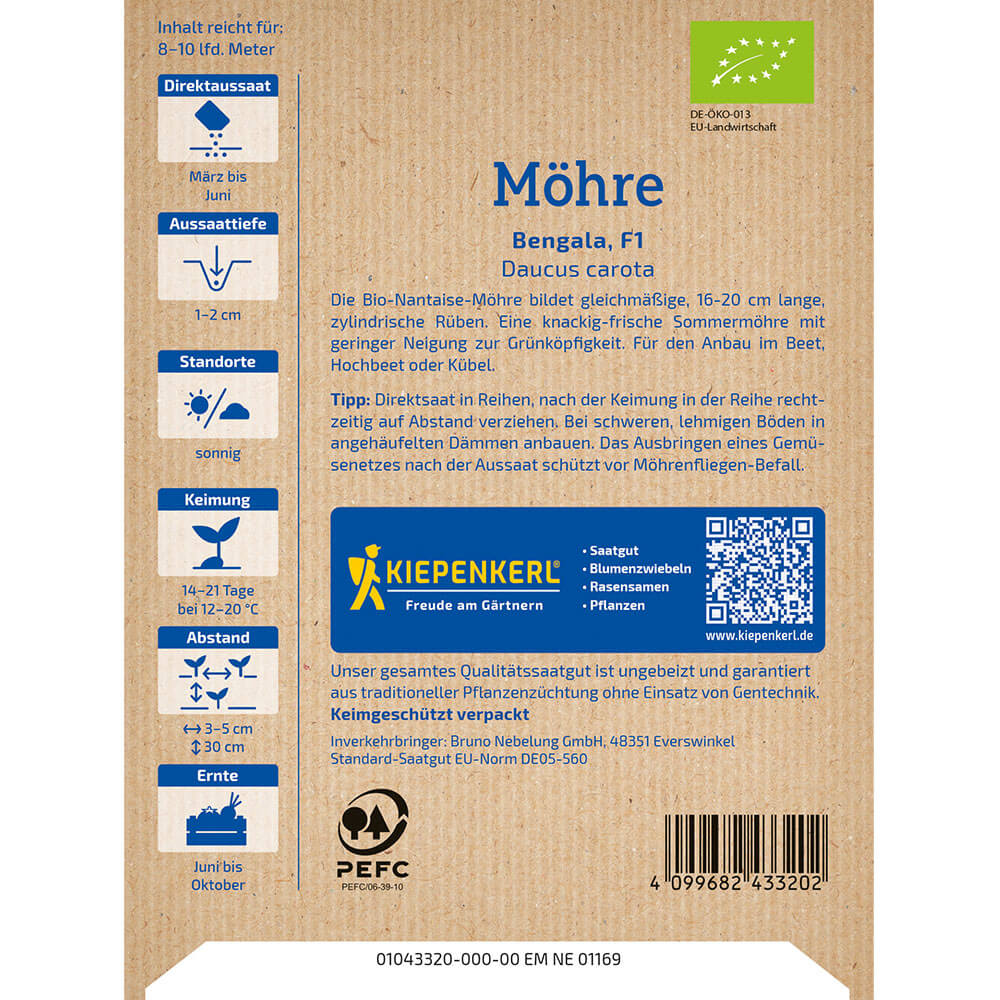Csomag tartalma: 1 db A Nantaise sárgarépa (F1) egy magas hozamú, korai érésű fajta, sima, hengeres formával és intenzív ízzel. Ez a fajta ideális saját kertben, erkélyen vagy akár kisebb területeken történő termesztésre. Az organic minősítés garantálja, hogy a vetőmagokat káros vegyszerek vagy műtrágyák használata nélkül termeszthetik, ami nemcsak a környezet védelmét, hanem azt is biztosítja, hogy a betakarítás káros maradványoktól mentes legyen. Akár a kertben, akár az erkélyen, vagy kis termőterületeken. Gyors fejlődés jellemzi, ami lehetővé teszi a korai betakarítást.