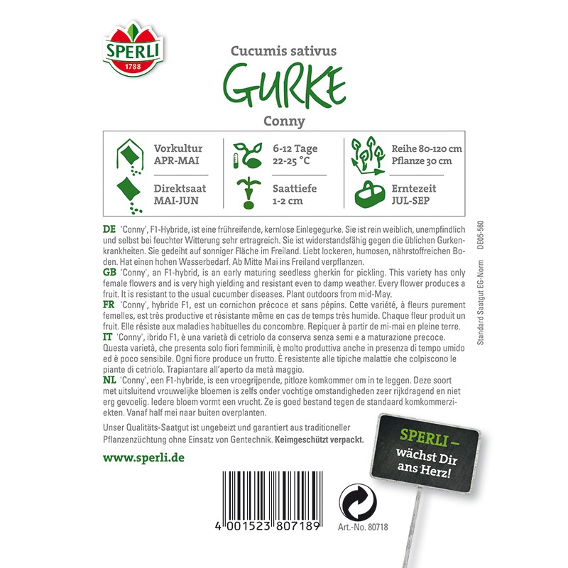 Csomag tartalma: 1 db Conny F1' savanyú uborka egy korai érésű, mag nélküli Hőmérséklettől és időjárástól függetlenül ez a tisztán nővirágú hibrid fajta magas hozamot hoz (minden virág egy-egy termést hoz), még nedves és hideg években is. Ideális ecetes és savanyú uborka készítéséhez. A fajta ellenáll az uborka rühének, az uborka mozaikvírusának és a lisztharmatnak. Ideális szabadföldi termesztésre. A tartalom kb. 25 növény számára elegendő.