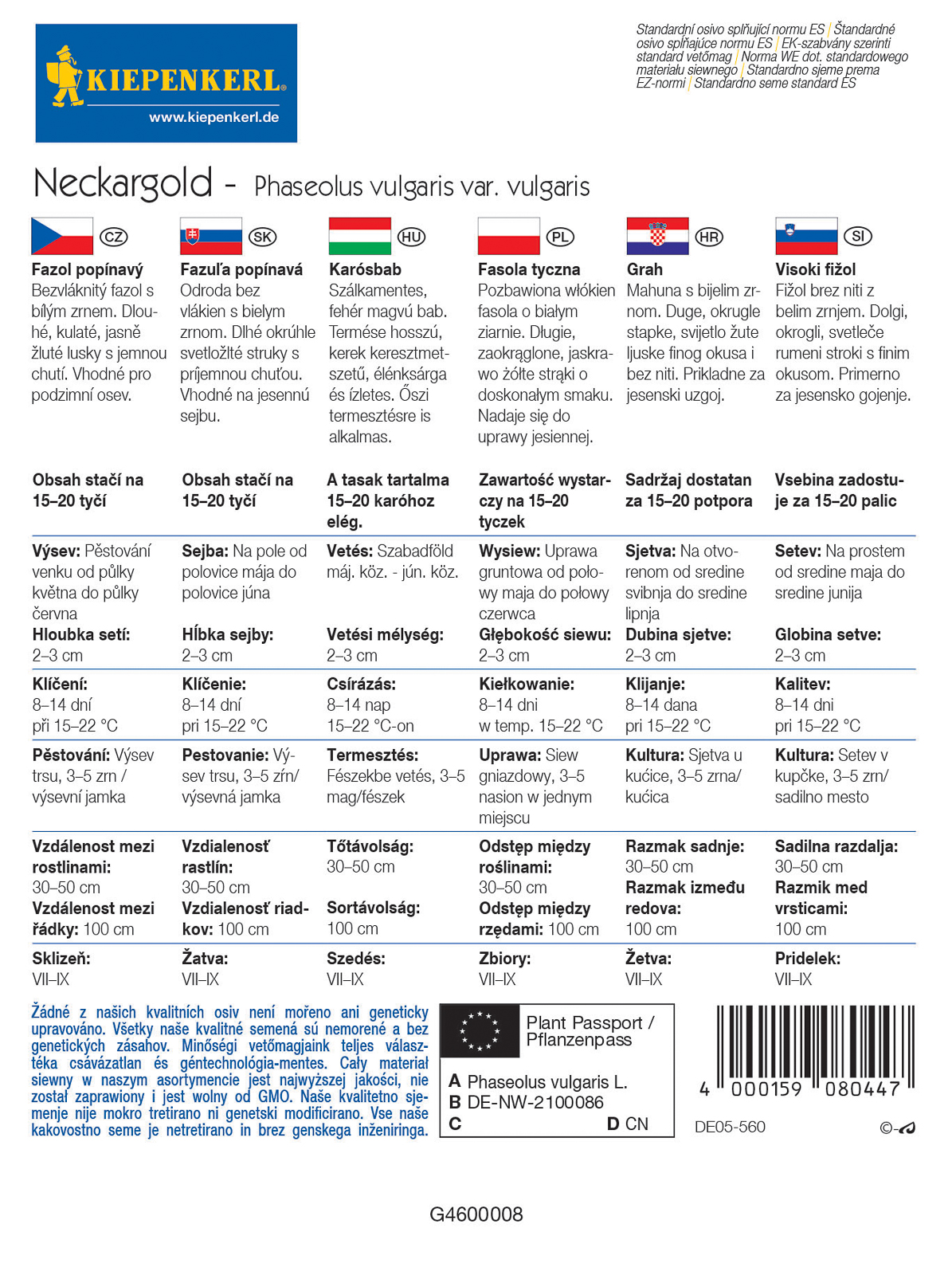 Samen Stangenbohnen Neckargold - Cikkszám 9942930